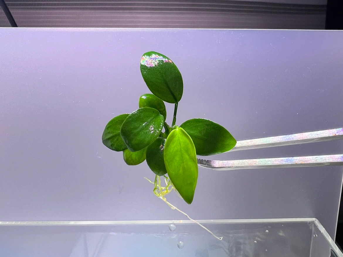 식재 방식은 소일이나 바닥재에 심는 방식보다 유목이나 돌, 장식물 표면에 활착시키는 방식이 기본입니다. 근경 식물인 만큼 근경이 바닥재 속에 묻히면 부패 위험이 커지므로, 반드시 근경이 외부로 드러나도록 두고 뿌리만 가볍게 걸치거나 감아 고정해 주시는 것이 좋습니다. 처음에는 실, 낚싯줄, 수초용 접착제 등을 이용해 유목이나 돌에 붙여 두고, 시간이 지나 뿌리가 자리 잡으면 자연스럽게 활착됩니다. 이 특성 덕분에 전경, 중경, 포인트 구간, 작은 가지 유목 끝부분, 분재형 레이아웃 등 세밀한 연출에 특히 유리합니다. 소형 잎이 모여 만드는 정돈된 질감은 과하지 않으면서도 자연스러운 고급감을 주기 때문에, 나노어항이나 새우항, 저기술 활착 레이아웃에서 매우 자주 활용됩니다.